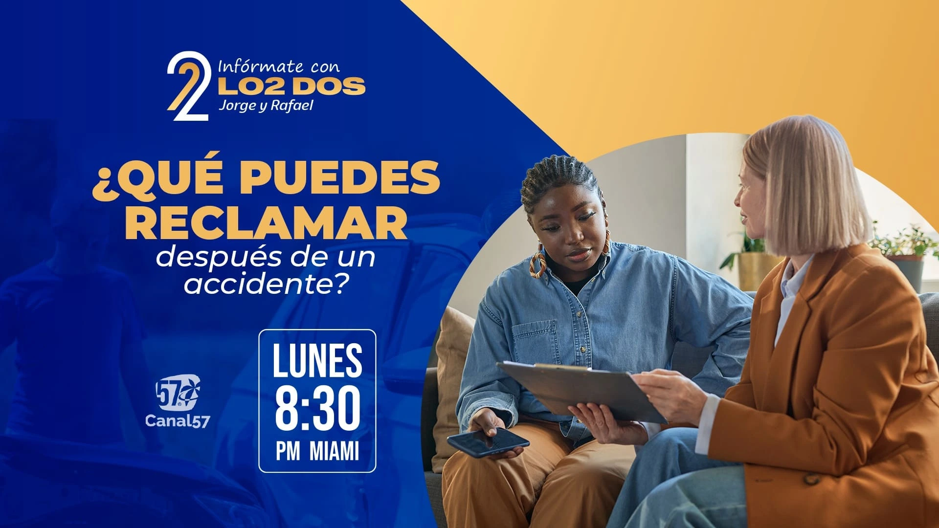 ¡Llegan al Canal57 los abogados Jorge Maxión y Rafael Roca, expertos en accidentes, con el segmento «Infórmate con lo2 Dos»!